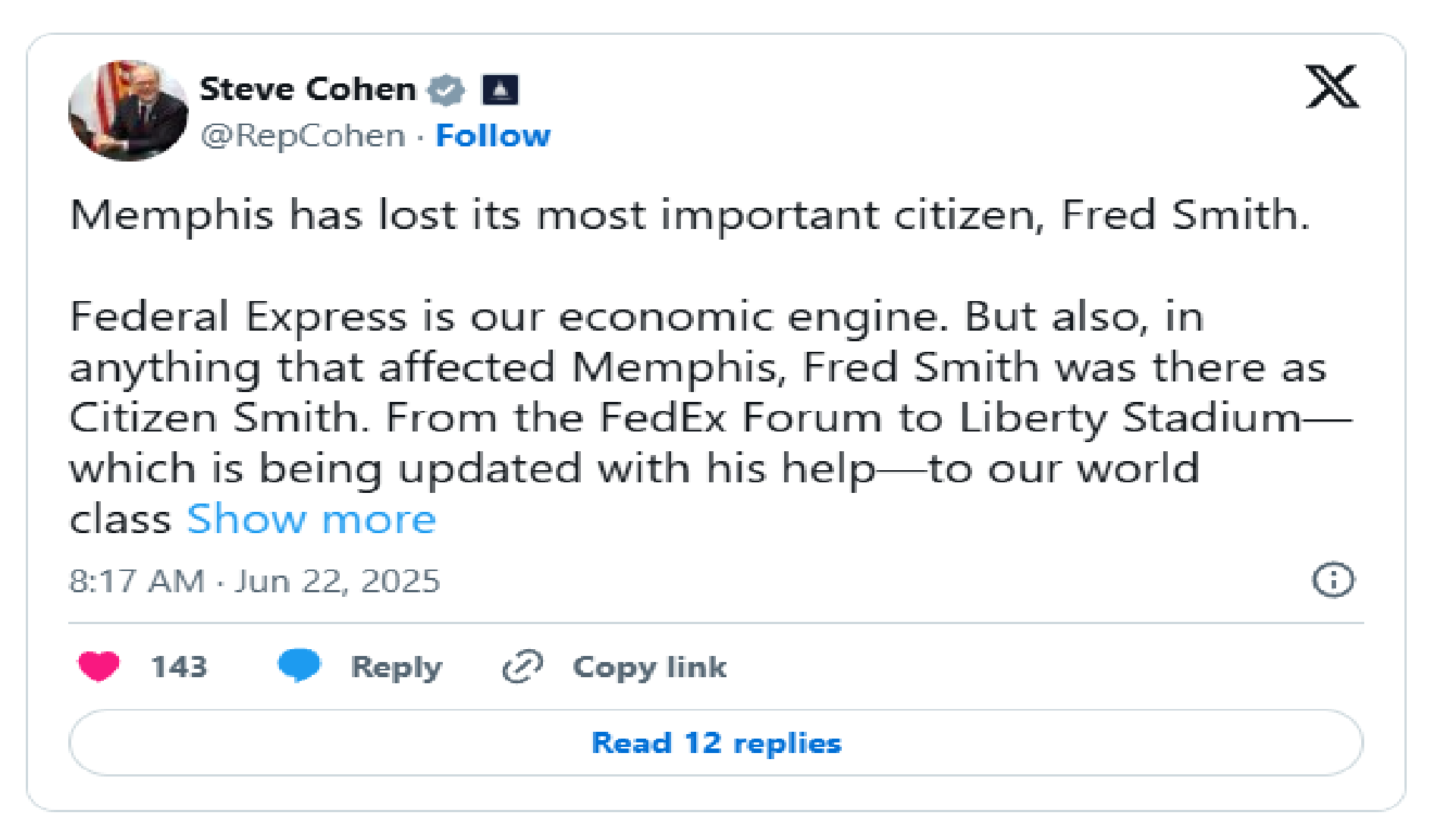 The following message was sent by Raj Subramaniam to FedEx team members, the statement read: “It is with profound sadness and a heavy heart that I share that Frederick W. Smith, our founder and executive chairman, died earlier today.